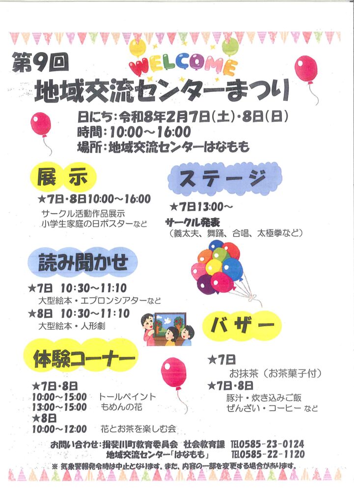 第9回 地域交流センターまつりがはなももにて開催されます。